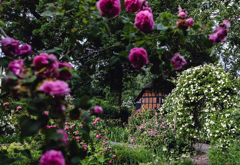 Die reiche Sammlung gedeiht in einem eigens angelegten Garten und zieht Garten- und Rosenfans aus aller Welt an, nicht nur wenn von Ende Mai bis Mitte Juli die Rosen blühen und duften; denn auch im Herbst ist dieser besondere Garten eine Pracht mit den verschiedenen Hagebutten an den Sträuchern.